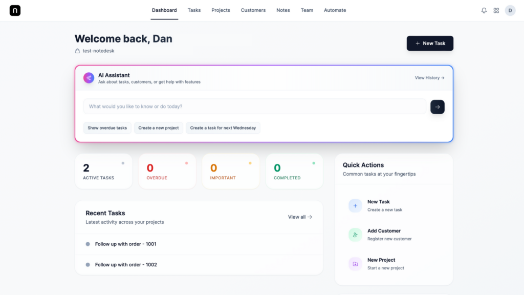 NoteDesk helps Shopify merchants streamline daily operations with AI-powered task management, smart automations, project tracking, team collaboration, and organized customer notes—all in one centralized dashboard.